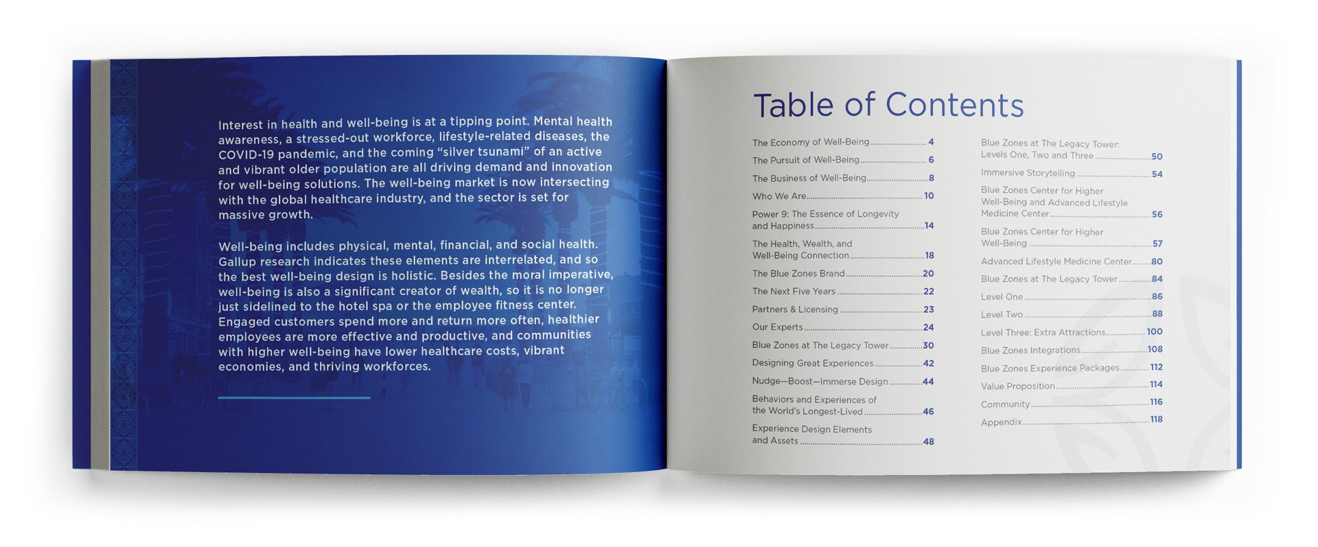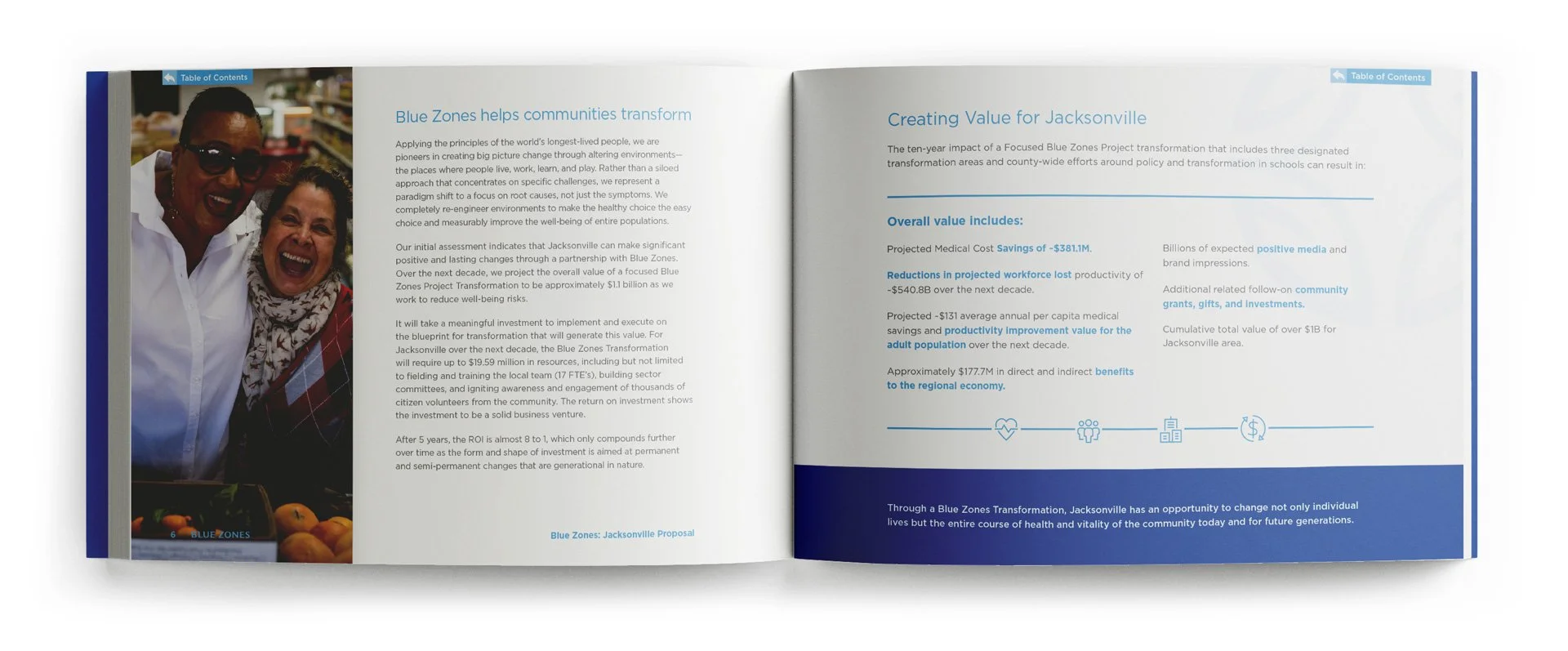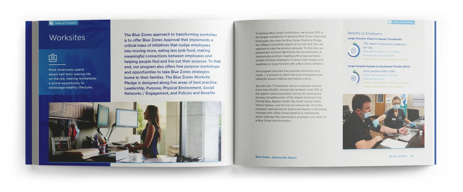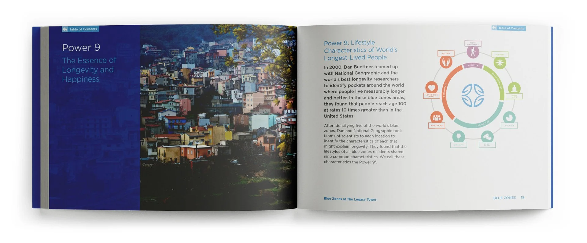 In this capacity I’ve shaped visual narratives that translate intricate ideas into elegant, digestible forms: infographics that clarify, data visualizations that illuminate patterns, spreads that balance precision with warmth. Each piece is crafted with careful attention to hierarchy, color, and rhythm, designed to reveal the heart of Blue Zones’ initiatives while honoring the humanity behind the numbers. The result is work that speaks with clarity and sophistication, inviting viewers to both understand and feel the impact of their work.